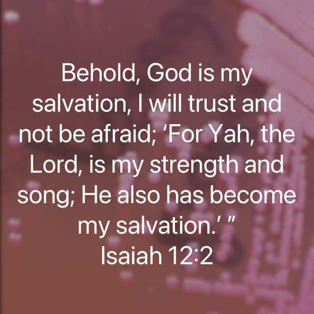 “Behold, God is my salvation, I will trust and not be afraid; For YAH, the LORD, is my strength and song; He also has become my salvation.”