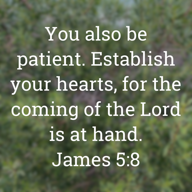 “You also be patient. Establish your hearts, for the coming of the Lord is at hand.”