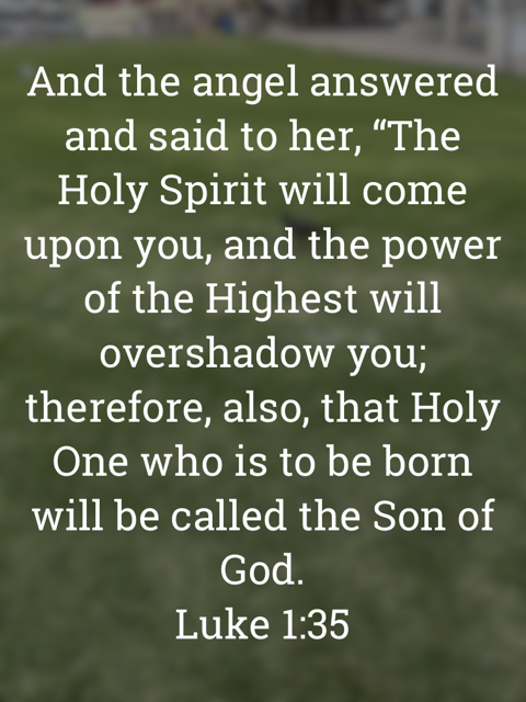 “And the angel answered and said to her, ‘The Holy Spirit will come upon you, and the power of the Highest will overshadow you; therefore, also, that Holy One who is to be born will be called the Son of God.’”