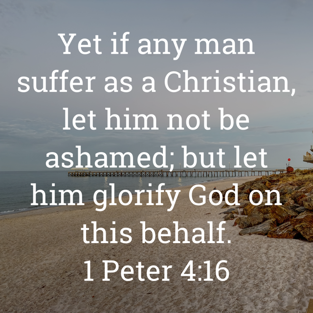 “Yet if any man suffer as a Christian, let him not be ashamed; but let him glorify God on this behalf.”