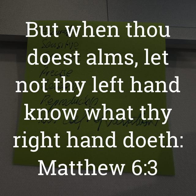 “But when thou doest alms, let not thy left hand know what thy right hand doeth.”