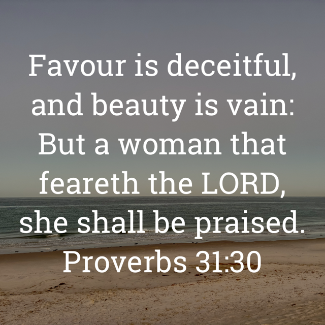 “Favour is deceitful, and beauty is vain: but a woman that feareth the LORD, she shall be praised.”