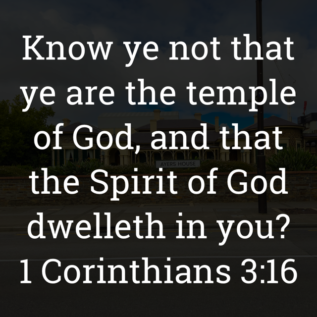 “Know ye not that ye are the temple of God, and that the Spirit of God dwelleth in you?” (1 Corinthians 3:16, KJV)