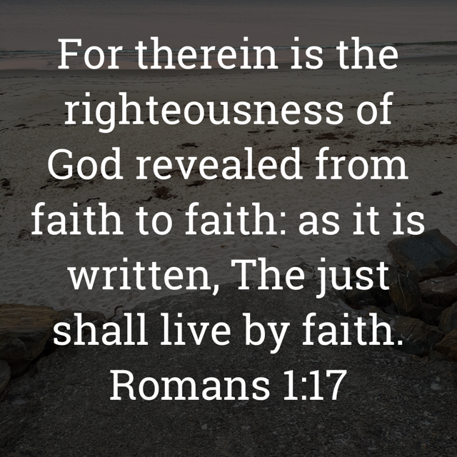 Romans 1:17 — “For therein is the righteousness of God revealed from faith to faith: as it is written, The just shall live by faith.”